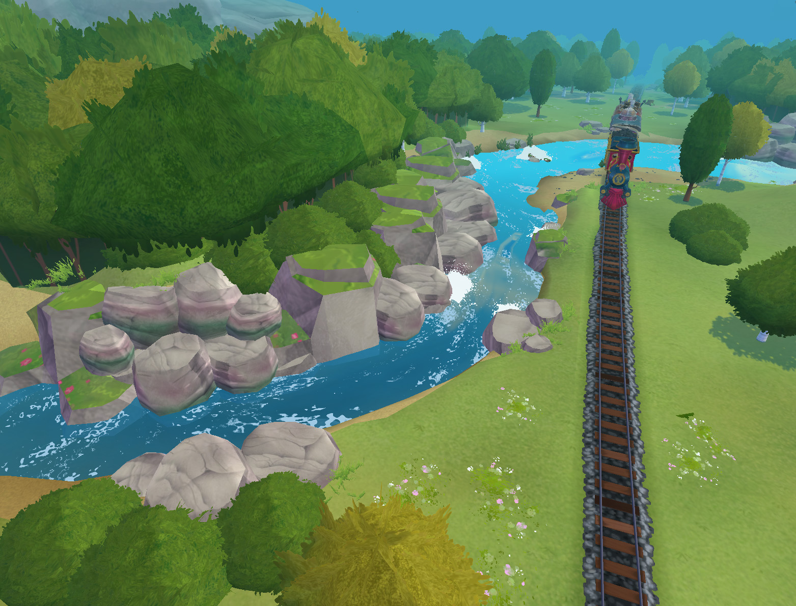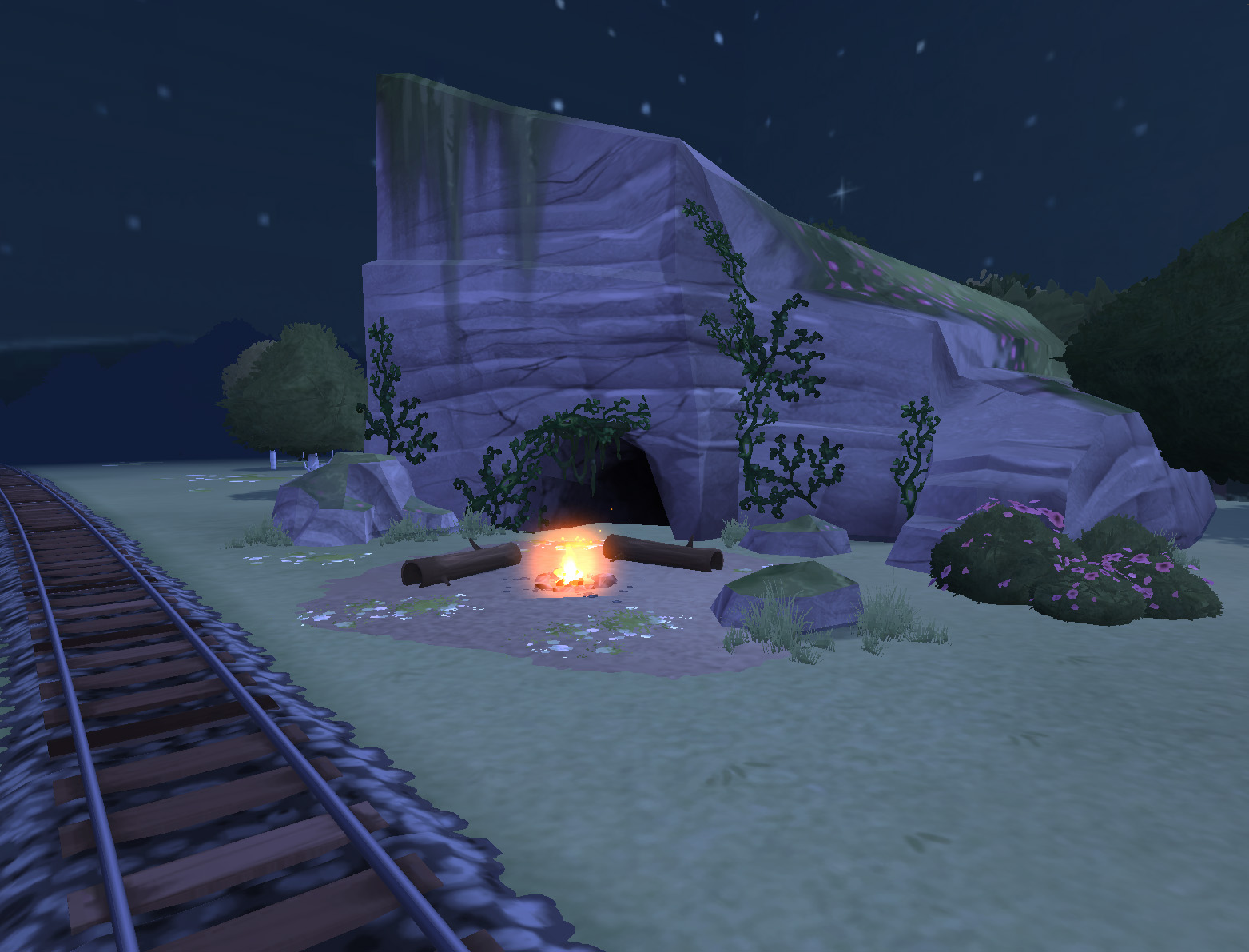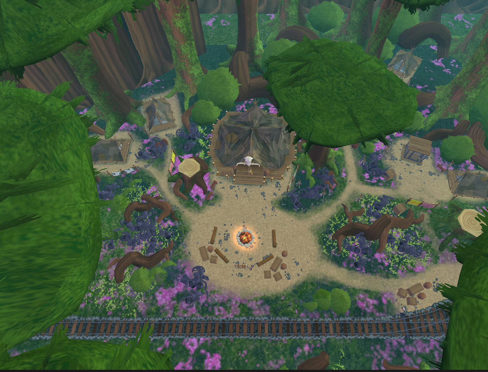 All shaders support global world curvature, applied consistently across all objects. The terrain shader uses a RGBA mask texture to blend multiple tiling textures per channel. To keep the scale consistent it project the UV to world scale in the shader.