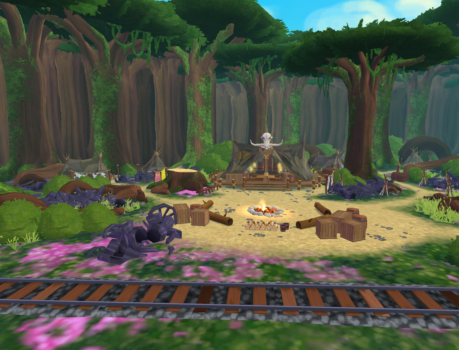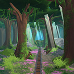 All shaders support global world curvature, applied consistently across all objects. The terrain shader uses a RGBA mask texture to blend multiple tiling textures per channel. To keep the scale consistent it project the UV to world scale in the shader.